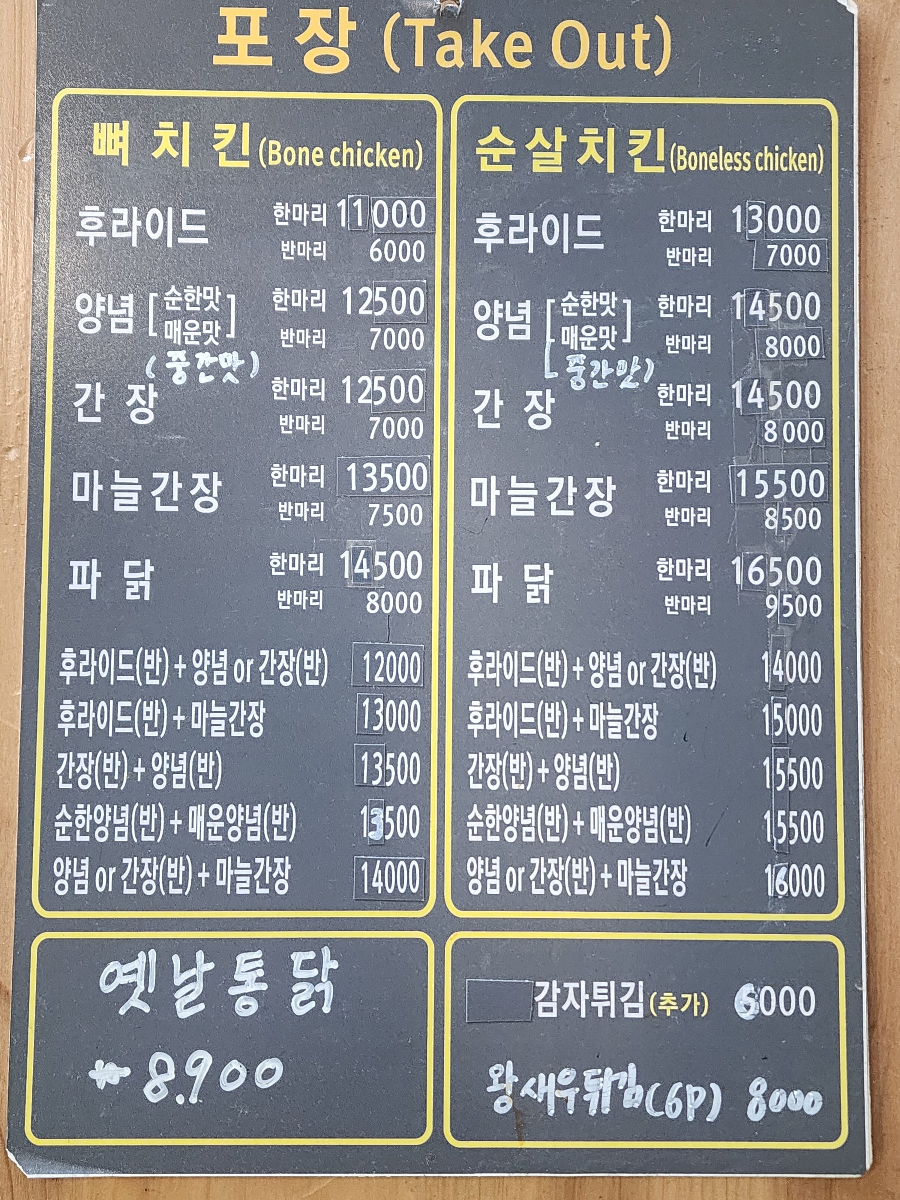 후라이드 한마리 11,000 | 옛날통닭 8,900