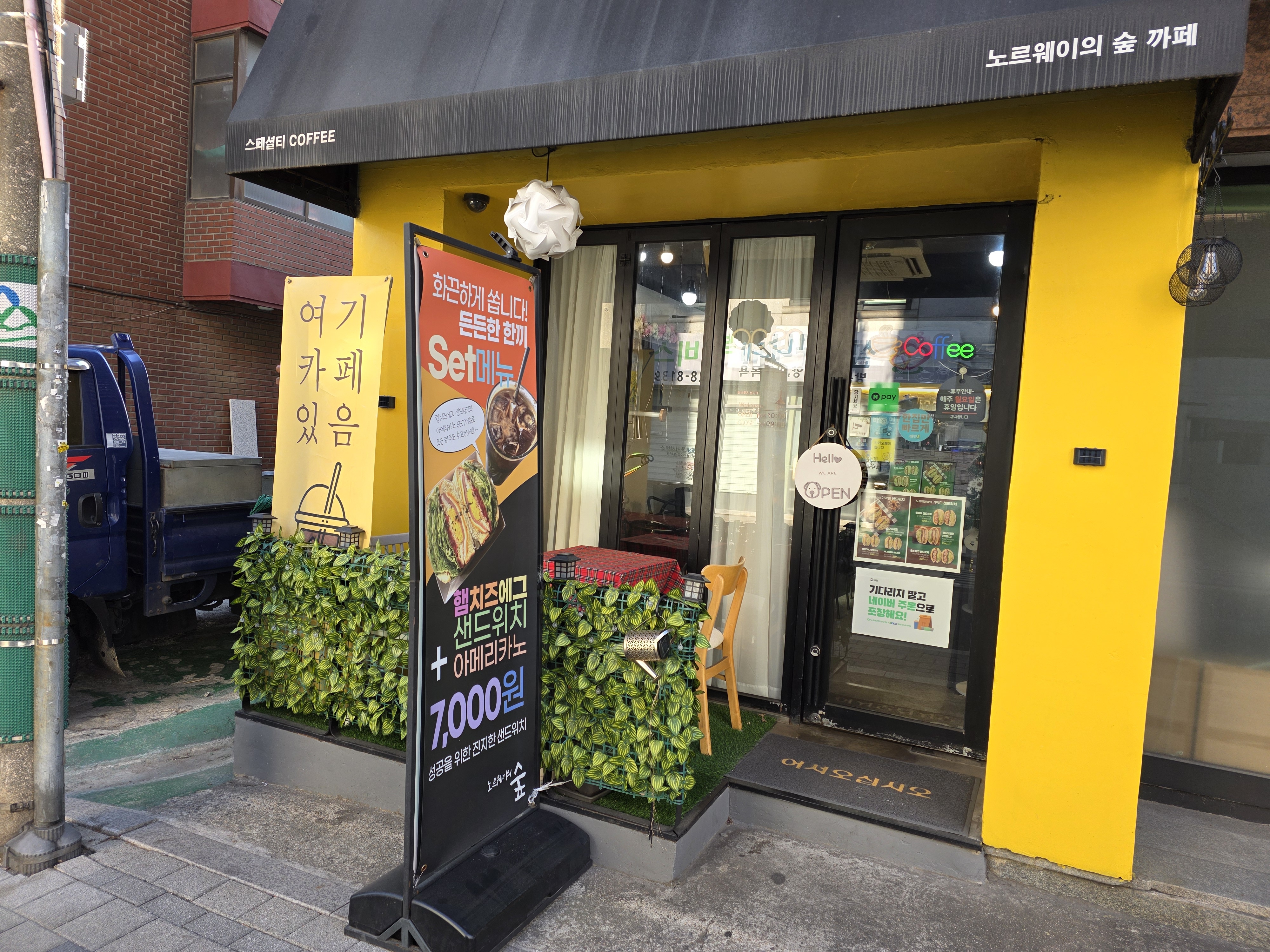숲모닝세트 7,000 | 햄치즈에그 샌드위치 6,000 | 에그크레미 샌드위치 7,000 | 해쉬브라운 샌드위치 7,500 | 통소세지 샌드위치 7,500 | 통새우 샌드위치 8,000 | 숲샐러드 7,500 | 과일사라다 8,500 | 아이스아메리카노 3,000 | 카페라떼 4,000 | 바닐라라떼 4,500 | 카푸치노 4,500 | 카페모카 4,500 | 카라멜마끼야또 4,500 | 플레인요거트스무디 5,500 | 딸기스무디 5,500 | 블루베리스무디 5,500 | 망고스무디 5,500 | 청포도스무디 5,500 | 딸기라떼 4,500 | 흑당라떼 4,500 | 초코라떼 4,500 | 복숭아아이스티 4,500 | 레몬아이스티 4,500 | 체리에이드 4,500 | 레몬에이드 4,500 | 청포도에이드 4,500 | 체리코크 4,500 | 캐모마일 4,000 | 페퍼민트 4,000 | 쟈스민 4,000 | 하비스커스 4,000