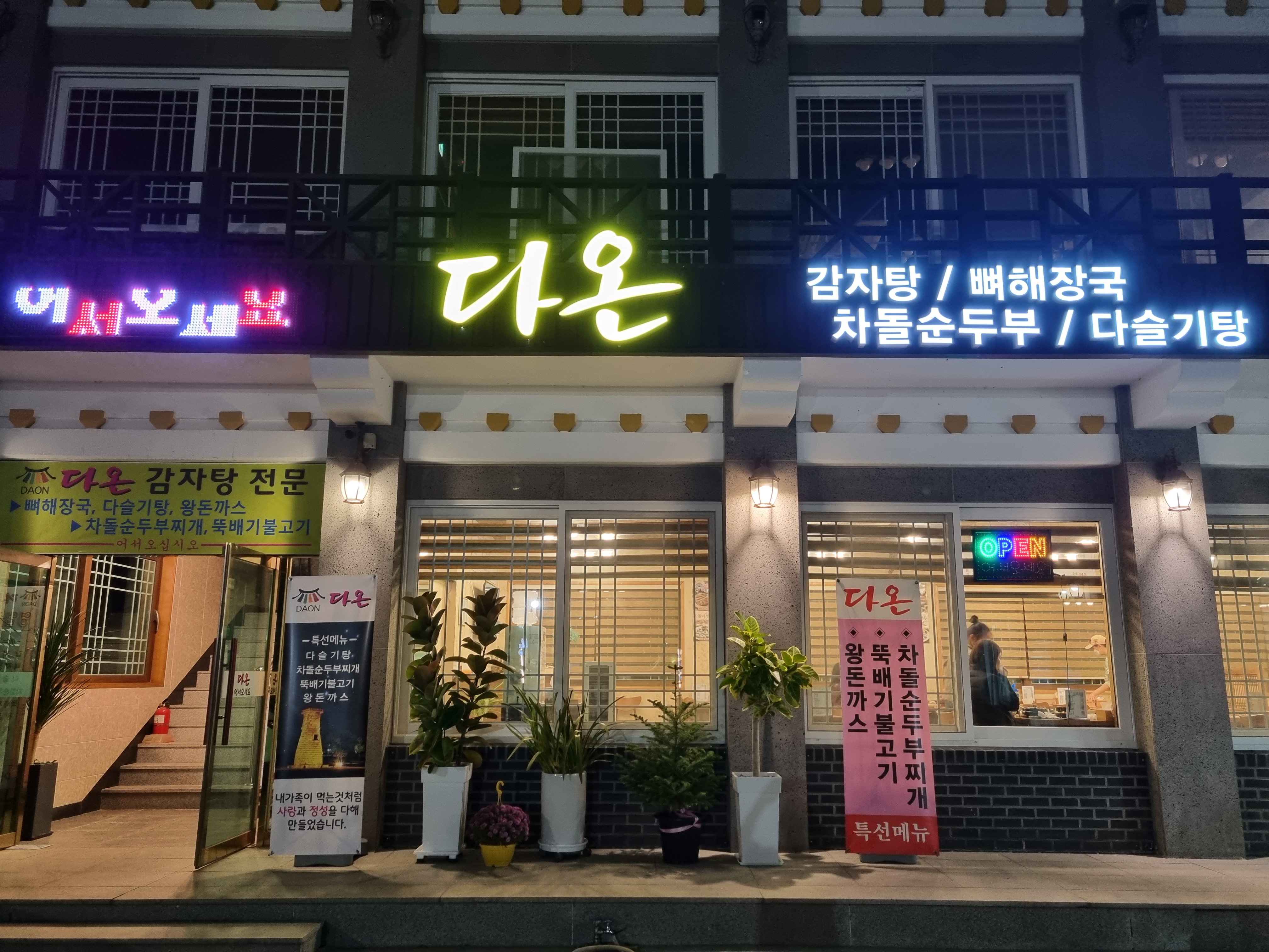 경주에 위치한 “다온”은 감자탕에 특화된 본격적인 한식 레스토랑입니다. 주변 주민과 방문객 모두에게 사랑받는 이 식당은 모든 요리를 신선한 재료로 만드는 데 자부심을 가지고 있습니다.
